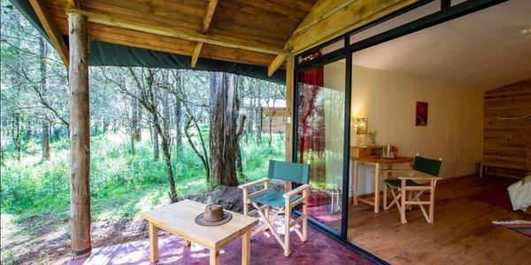 The accommodation offers a unique and luxurious experience with the natural ruggedness of the forest. It has been thoughtfully designed to harmonise with its natural surroundings, allowing guests to fully immerse themselves in the untamed beauty of the forest. One has all the creature comforts you would need at the retreat – a hot shower in the en suite bathroom and fresh filtered drinking water provided daily, makes for a truly memorable retreat experience.
