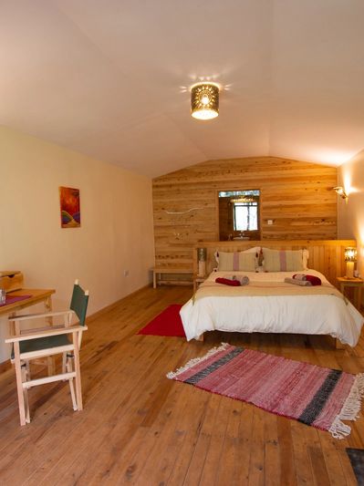 Each of the six cabins, designed for two guests, is thoughtfully crafted for comfort and connection to the surrounding environment. One cabin, now expanded, features a double room, a twin room, and an additional bed for children, making it ideal for families to enjoy this unique and nature immersed experience.